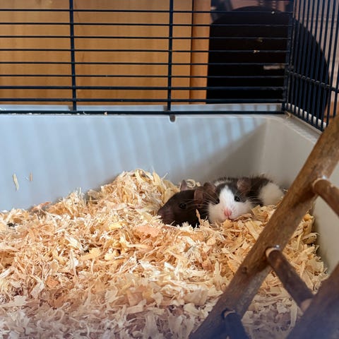 Jag har haft Erwin och Edmund i nästan ett år nu men har märkt att jag inte har lika mycket tid för dem pga skolan mm. De är världens gosigaste och finaste råtthanar och är extremt tama och med bra temperament, jag söker efter någon som har tid med pojkarna och är intresserad av att ha råttor. De är ungefär 9 månader gamla :) bur samt inredning, godis, ingår!