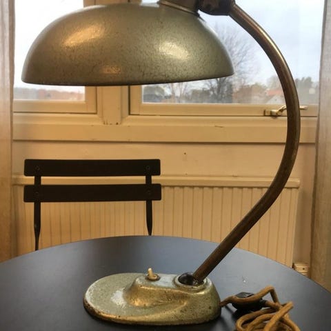 Patina i färgen ...tryckknapp fungerar ...lite patina där men funktionsmässigt ok ...bordsfäste ej original men fungerar