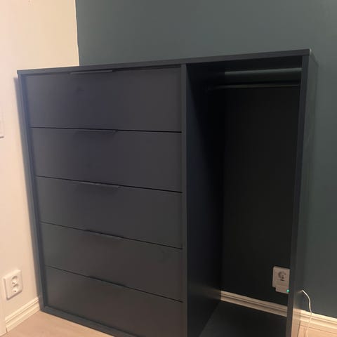 Stadig och rymlig byrå av äldre modell. Den har tydliga skavanker och bruksspår, vilket ger den charm och karaktär enligt oss. Men ge den ett lager färg och den är säkert som ny igen.