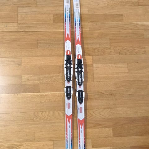 Redline Carbon classic inelligrip- mycket bra skinskidor som passar bäst till en åkare på 70-80 kg, utprovat. Köpte dom nya inför säsongen 24/25, tränade 20 mil och körde halvvasan på dom. Belagen är fina utan repor, men nån liten skråma kan man säkert se i rätt ljus :)