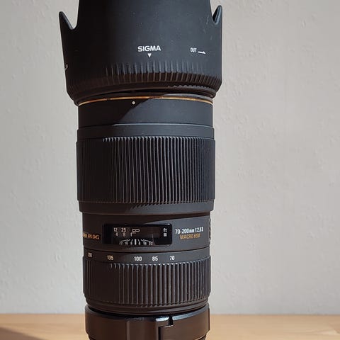 Säljer ett Sigma 70–200mm f/2.8 DG OS HSM, ett professionellt telezoomobjektiv med hög ljusstyrka och optisk bildstabilisering. Perfekt för sport, porträtt, bröllop, events och naturfoto.