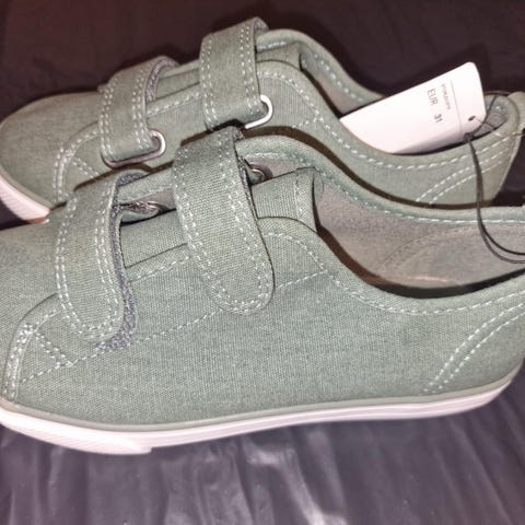 Nya cremefärgade sneakers med kardborreknäppning från H&M. Dinosauriemönster, storlek 31.