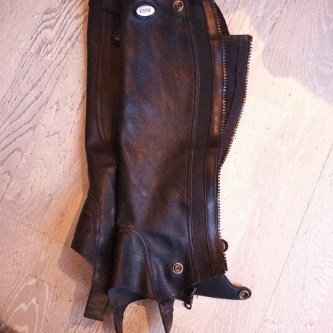 Svarta skinnchaps med dragkedja och knapp