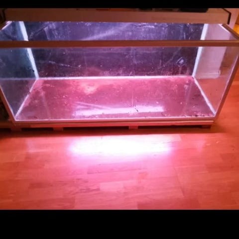 Litet akvarium (20L) säljes med allt som behövs för att komma igång. Pump, doppvärmare (sugpropperna behöver nog bytas), LED-lampa, dekoration, växt, mat samt Endler- guppys och två amanoräkor (4 år) ingår.