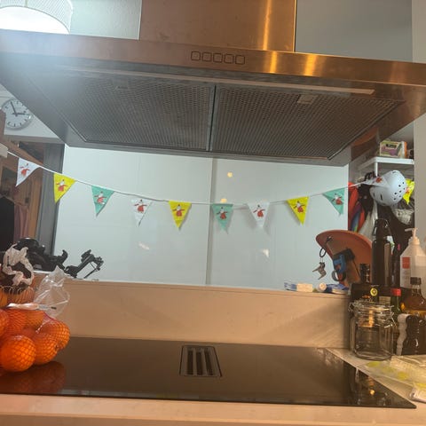 Fläktkåpa i rostfritt stål. Designad för installation över spis för effektiv ventilation i kök.