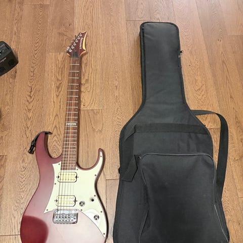 Elgitarr i rosa färg. Elgitarren levereras med tillbehör som en förstärkare, plektrum, anslutningskabel, axelrem och mjukt ryggsäckfodral. Gitarren är inte stämd och endast använd vid några enstaka tillfällen.
