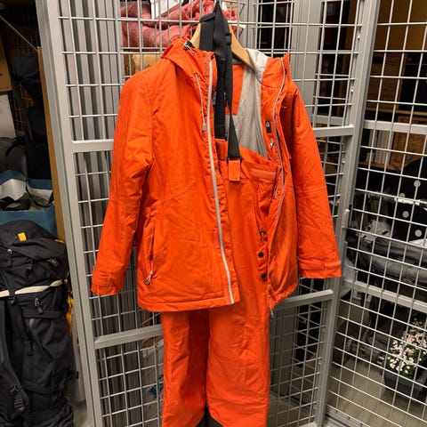 Slalomjacka (S) och slalombyxor (M) från Tenson. Jackan och byxorna har snölås. Hjälmen är från Salomon och har storlek S/M. Googles är från Scott.