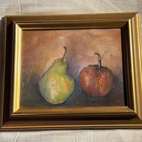 Två oljemålningar föreställande frukt