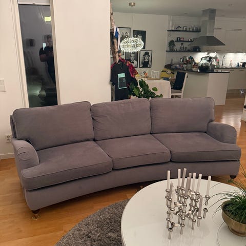 Det är soffgrupp från Mio, är en trea två och en halva och en fåtölj. De är i väldigt bra sick inga fläckar eller dylikt väldigt snygga och klassiska möbler som aldrig går ur tiden.