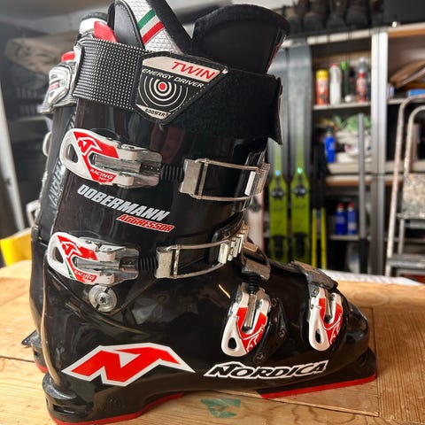 Salomon skidpjäxor med längdmått 307 mm (26/26,5). Färgerna är vit, svart och röd. Skidpjäxorna är designade för att ge stöd och komfort vid skidåkning.