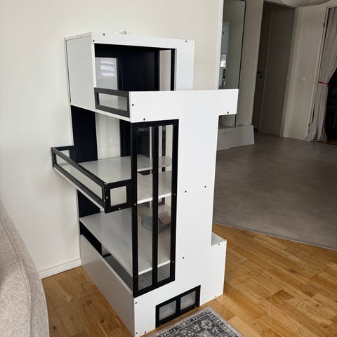 Dock huset är fint perfekt for barbie och kan användas som bokhylla. Finns npgra synliga repor, ingen stora skador. Finns klistermärken som syns, det går att ta bort.