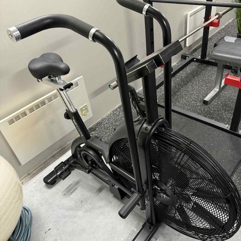 Assault AirBike träningscykel i svart färg. Utrustad med fläkt för luftmotstånd och handtag för överkroppsträning. Justerbart sadel för anpassning till användarens längd. Passar för konditions- och styrketräning.