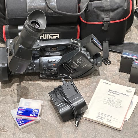 Sony kamera med utbytbart objektiv och tillhörande mikrofon. Produkten är svart och inkluderar originalförpackning och tillbehör för fotografering och ljudinspelning.