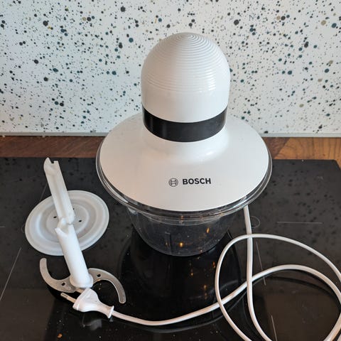 Hushällsmaskin Bosch Universal Germany. Bl. a degkrok se bilder för innehåll. Mått Längd ca 37 cm, bredd ca 26 cm, höjd 24-44 cm. Vikt ca 10445 gram. Funktionstestad.