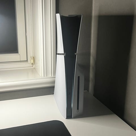 Sony Playstation 5 spelkonsol. En avancerad spelkonsol för hemmabruk med modern design och kapacitet att spela senaste generationens spel.