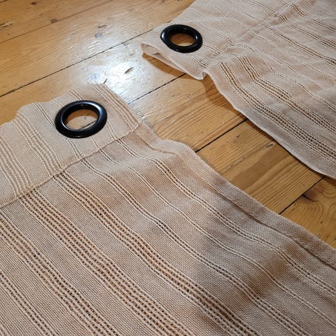 Säljer två stycken fina långa gardiner i jättebra skick. Tyget är ganska tjock och rejäl, ger en fin fall för gardinerna.