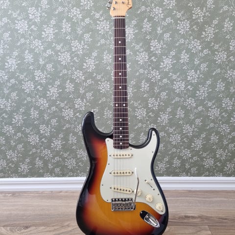 Säljer en Gilmour Stratocaster i klassisk sunburst-finish. Snygg Strat-kopia med klassiskt sound och utseende. Gitarren är i bra skick och fungerar som den ska. Det finns en mindre lackskada på baksidan (se bild), men inget som påverkar spelbarhet eller ljud.