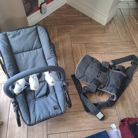 Mycket gott skick, produkterna är nyköpte av oss under 2025 och är mycket sparsamt använda. Rökfritt hushåll/bil. Originalkartongerna finns kvar till babyskydd och adaptern.