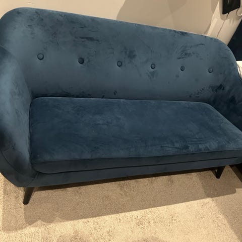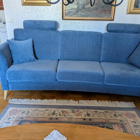 Blå 3-sits soffa med hög rygg