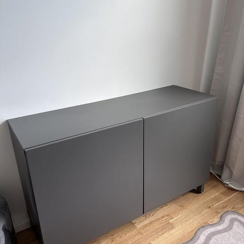 Bestå bänk/förvaring grå i sparsamt skick. En liten repa på ovansidan, annars jättefin.