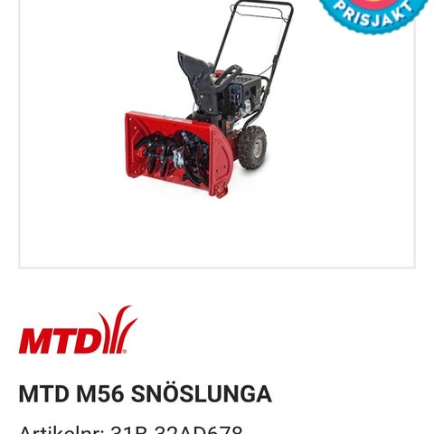 Snöslunga med röd färg. Maskinen är utrustad med handtag och drivning, avsedd för att röja snö på trottoarer och uppfarter. 510mm bredd, använd endast ett fåtal gånger. Nypris ca 5.000kr.