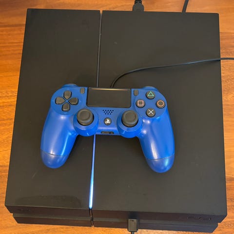 Konsolen är svart och avsedd för användning med Playstation 4-spel.