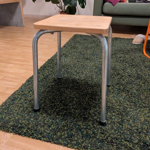 En enkel pall med justerbar sitthöjd, sitt ytan lite böjd.