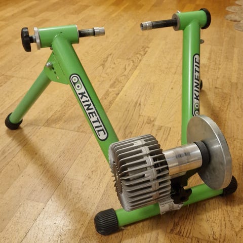 Femor Cykeltrainer för inomhusträning. Utrustad med justerbara fästen och en stabil ram för att passa olika cykelstorlekar. Svart och metallfärgad konstruktion. Flertalet olika motstånd kan justeras enkelt på vredet som går att fästa på styret.