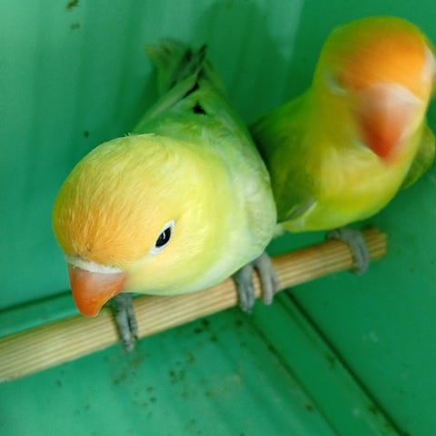 En dvärgpapegoja som är fem månader gammal. Hon biter aldrig och flyger som vanligt. Kön: hona.