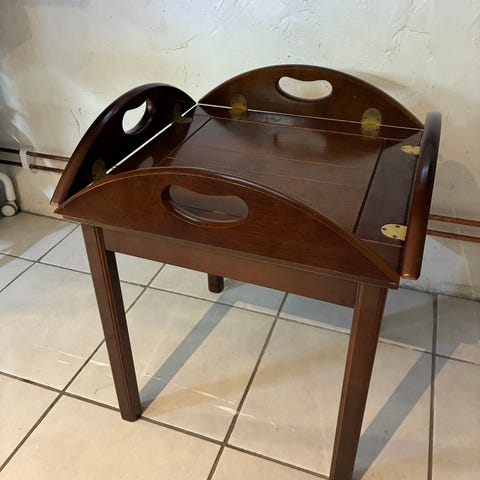 Snygg och tidlös design på detta mörka soffbord i trä. Ett sk Butlers tray, brickbord i engelsk stil.