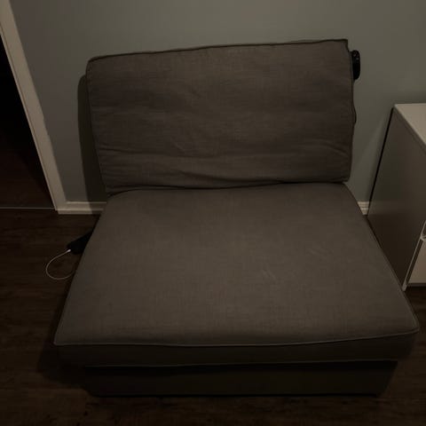 Fåtölj och fotpall från Sofa Company bortskänkes mot avhämtning.