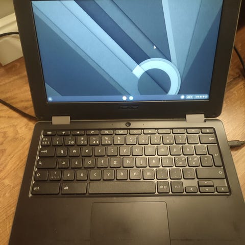 ChromeBook som mestadels användes för att göra läxor. Batteriet är dött men den funkar fint så länge kabeln är ikopplat.