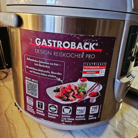 En riskokare av märket Champion som har stått oanvänd i flera år, men funkar fortfrarande. Den kokar upp till 8 koppar ris och har en glaslock. Nypris: ca 500 kr.