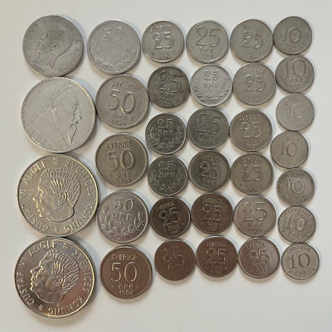 Två st svenska silvermynt från 1949 och 1950, valör 2 Kr
