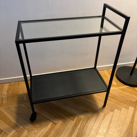 Jättefin och praktisk serverings-/drinkvagn från Mio med låsbara hjul.