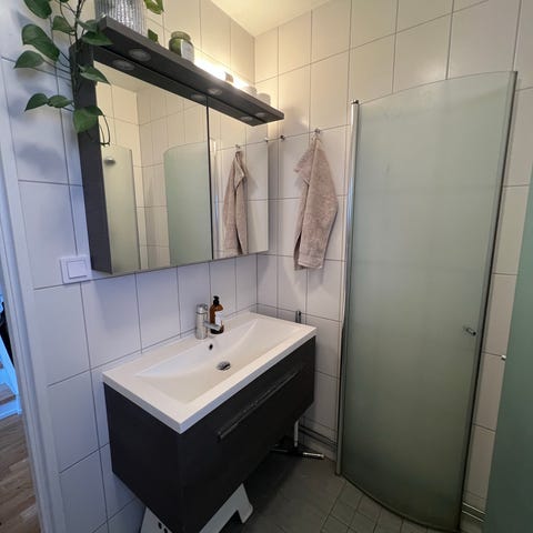 Spegelskåp, blandare och kommod