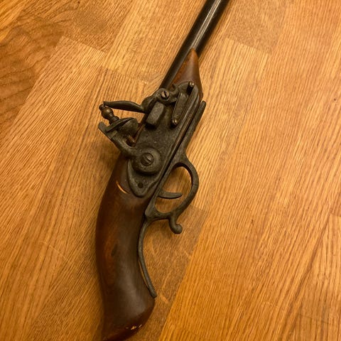 Har även en Colt 45 Peacemaker 9mm. En repliker i rent vapen stål. Köpt 1978 av min morfar i Tyskland. Jag fick den 1987. Fin tung pjäs. Licens tillverkande av Colt. Exakt som en riktig men pluggade.