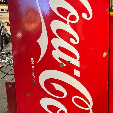 Plåtskylt, Drick Pommac, uppfriskande.