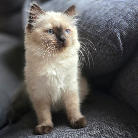 Kattmamman är mix mellan russianblue/birma och kattpappan är 100% rödmitted ragdoll. Båda föräldrarna är trygga, sociala och har ett väldigt trevligt och harmoniskt temperament.