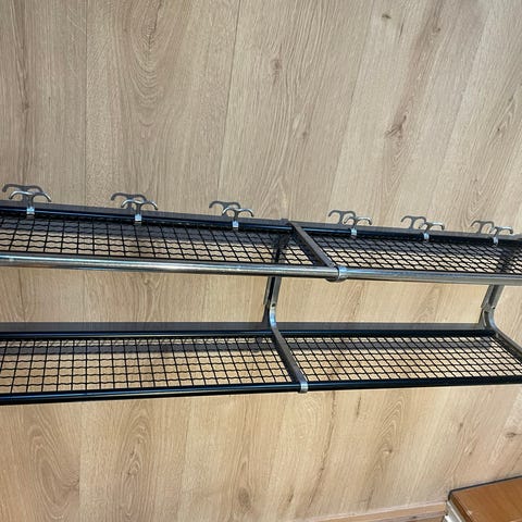 Äldre retro hatthylla i metall RIO