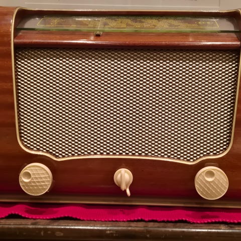 En charmig vintage 40-tals Luxor radiogrammofon i fint skick för sin ålder. Perfekt för den som älskar retrodesign. Skåpet har en vacker träfinish och detaljer i rotting. Funktion garanteras ej. Verkar vara komplett. Mått; Bredd 76, höjd 77, djup 44. Leverans erbjuds mellan Ystad o Malmö till självkostnadspris. Annars sker avhämtning strax utanför Anderslöv.