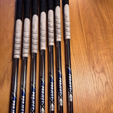 Titleist T250 i 5-P med uppgraderade skaft, PX 5.5 med midsize Golfpride Multicompound grepp med några extra lager tejp.