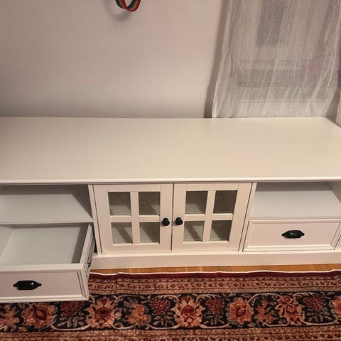 Vitt TV-bänk med förvaringsutrymme
