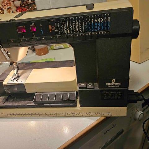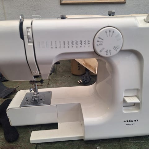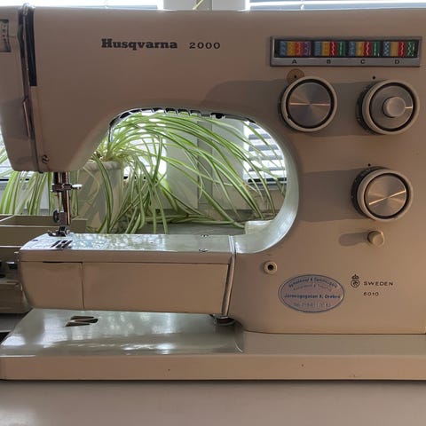 Jag säljer en Hugin 1300 symaskin. Den är mycket sparsamt använd och därför i väldigt gott skick. Maskinen är tillverkad i Sverige och har en vit och turkos färgkombination.