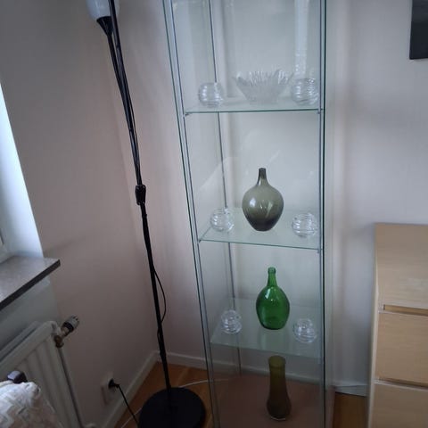 Två stycken vitrinskåp av märket DETOLF från ikea inklusive belysning. Lätt dammtorkade men inte djuprengjorda. Fint skick och hela. Kan monteras ned och kan hjälpa till att lasta om så önskas.