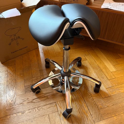 Sadelstol med ryggstöd i svart. Jättefint skick. BVSA