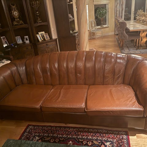 Chesterfield soffa i läder plus pall säljes för 1200 Sek för båda eller 900 Sek för soffan och 500 Sek för pallen om de köpes separat.