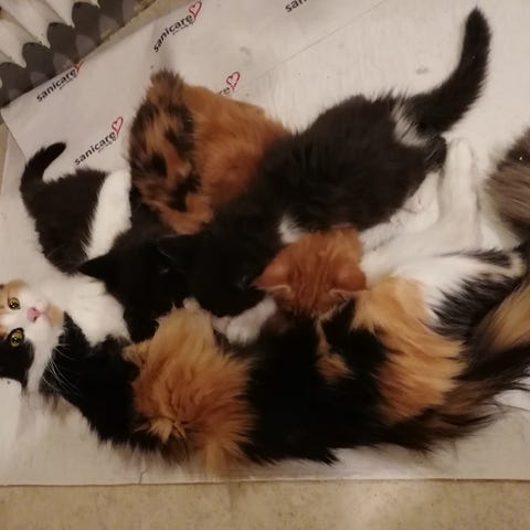 Hon är van vid andra katter, hundar och barn.