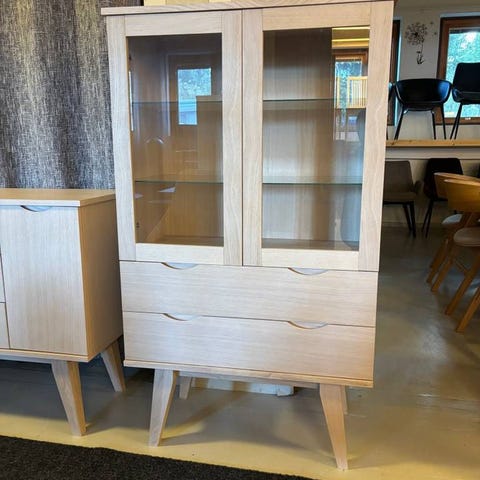 Line Burned Walnut Vitrinskåp. Utställnings exemplar. Säljes i befintligt skick. Ord pris 18 800 kr.
