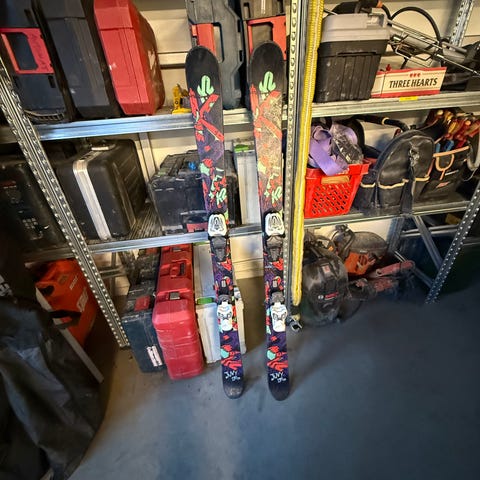 Skidor: K2 Juvy, 149 cm twintip – fungerar perfekt både på pisten och i parken.